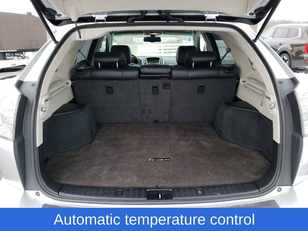 Classic Silver Metallic 2009 Lexus RX 350 AWD 5-Speed Automatic with Overdrive 3.5L V6 Dual VVT-i RX 350, 4D Sport Utility, 3.5L V6 Dual VVT-i, 5-Speed Automatic with Overdrive, AWD, Classic Silver Metallic, Black w/Leather Seat Trim, 17 x 6.5 Alloy Wheels, 3.291 Axle Ratio, 4-Wheel Disc Brakes, 8 Speakers, ABS brakes, Air Conditioning, Alloy wheels, AM/FM radio, Auto-dimming door mirrors, Auto-dimming Rear-View mirror, Automatic temperature control, Bodyside moldings, Brake assist, Bucket Seats, Bumpers: body-color, CD player, Compass, Delay-off headlights, Driver door bin, Driver vanity mirror, Driver's Seat Mounted Armrest, Dual front impact airbags, Dual front side impact airbags, Electronic Stability Control, Fabric Seat Trim, Four wheel independent suspension, Front anti-roll bar, Front Bucket Seats, Front dual zone A/C, Front fog lights, Front reading lights, Fully automatic headlights, Garage door transmitter: HomeLink(R), Genuine wood console insert, Genuine wood door panel insert, Heated door mirrors, Illuminated entry, Knee airbag, Leather Shift Knob, Leather steering wheel, Low tire pressure warning, Occupant sensing airbag, Outside temperature display, Overhead airbag, Overhead console, Panic alarm, Passenger door bin, Passenger seat mounted armrest, Passenger vanity mirror, Power door mirrors, Power driver seat, Power Liftgate, Power passenger seat, Power steering, Power windows, Radio data system, Rear anti-roll bar, Rear seat center armrest, Rear window defroster, Rear window wiper, Remote keyless entry, Security system, Speed control, Speed-sensing steering, Split folding rear seat, Spoiler, Steering wheel mounted audio controls, Tachometer, Tilt steering wheel, Traction control, Trip computer, Variably intermittent wipers.