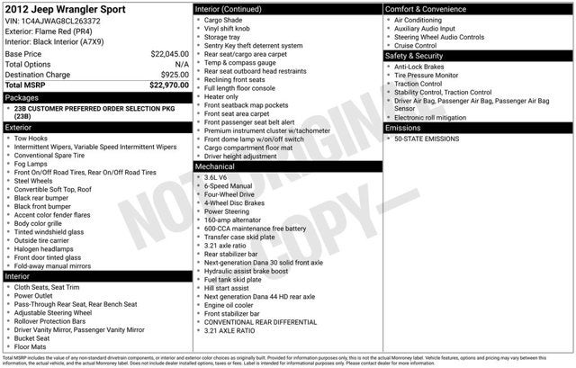 Flame Red Clearcoat 2012 Jeep Wrangler Sport