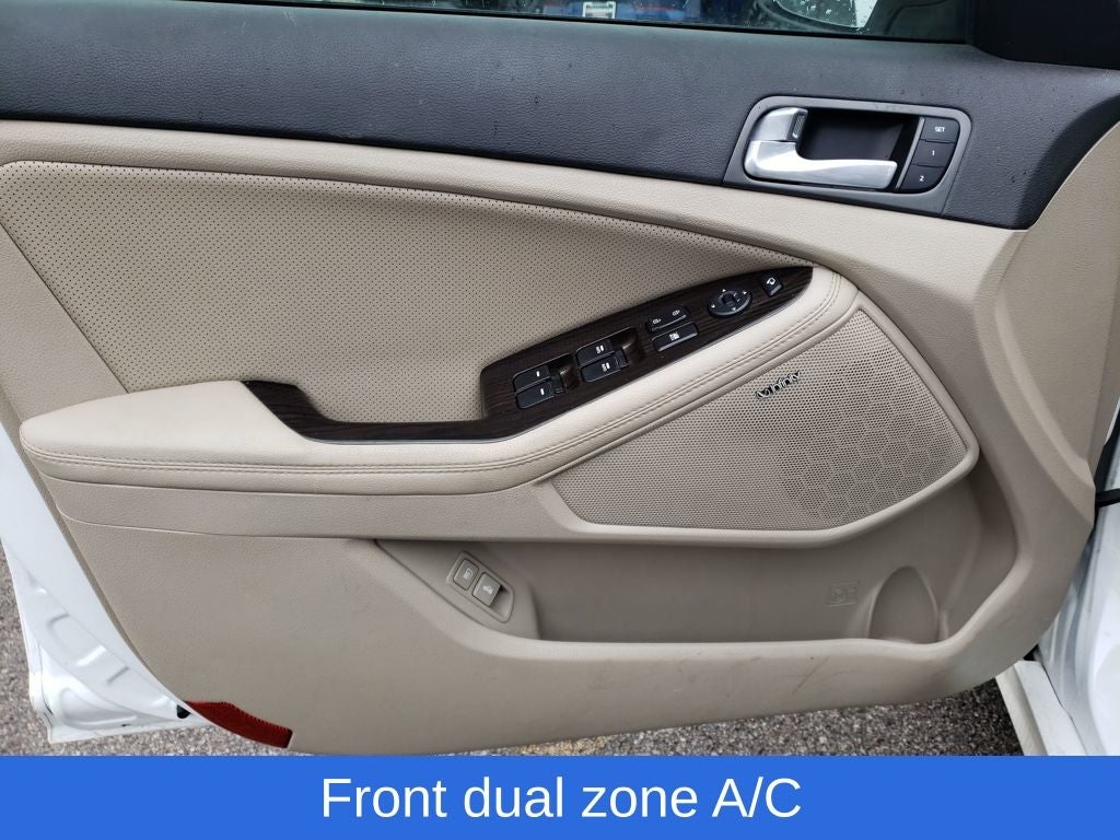 This Optima EX also boasts a stunning Snow White Pearl exterior, complemented by the sleek Gloss Black B-Pillar. The 17-inch Alloy Wheels and body-color bumpers lend an elegant, refined appearance that is sure to turn heads.