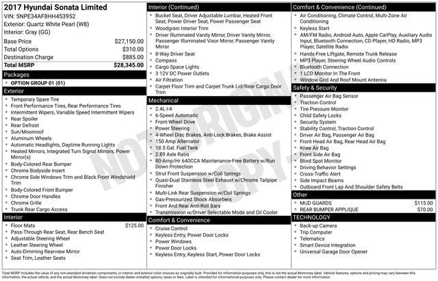 CONTACT COUGHLIN HYUNDAI AT 740-928-9000. ***This 2017 Hyundai Sonata Limited is a great choice***. Odometer is 18530 miles below market average! 25/35 City/Highway MPG