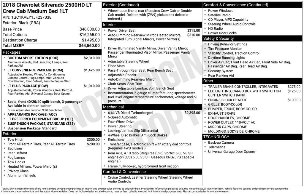 Black 2018 Chevrolet Silverado 2500HD LTAwards:* 2018 KBB.com 10 Most Awarded Brands Please call or e-mail first for the best and quickest information. Visit www.coughlinpataskala.com to see more of this store’s new and used vehicle inventory for sale. Price excludes tax, title, license and document fee. While we make every effort to prevent pricing errors, key stroke and human errors do occur. Please contact dealer for details.