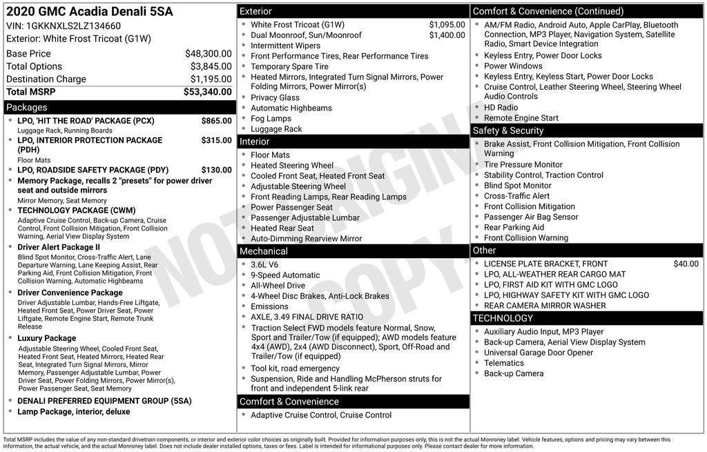 - 8" diagonal GMC Infotainment System with Navigation, includes multi-touch display, AM/FM/SiriusXM1 radio