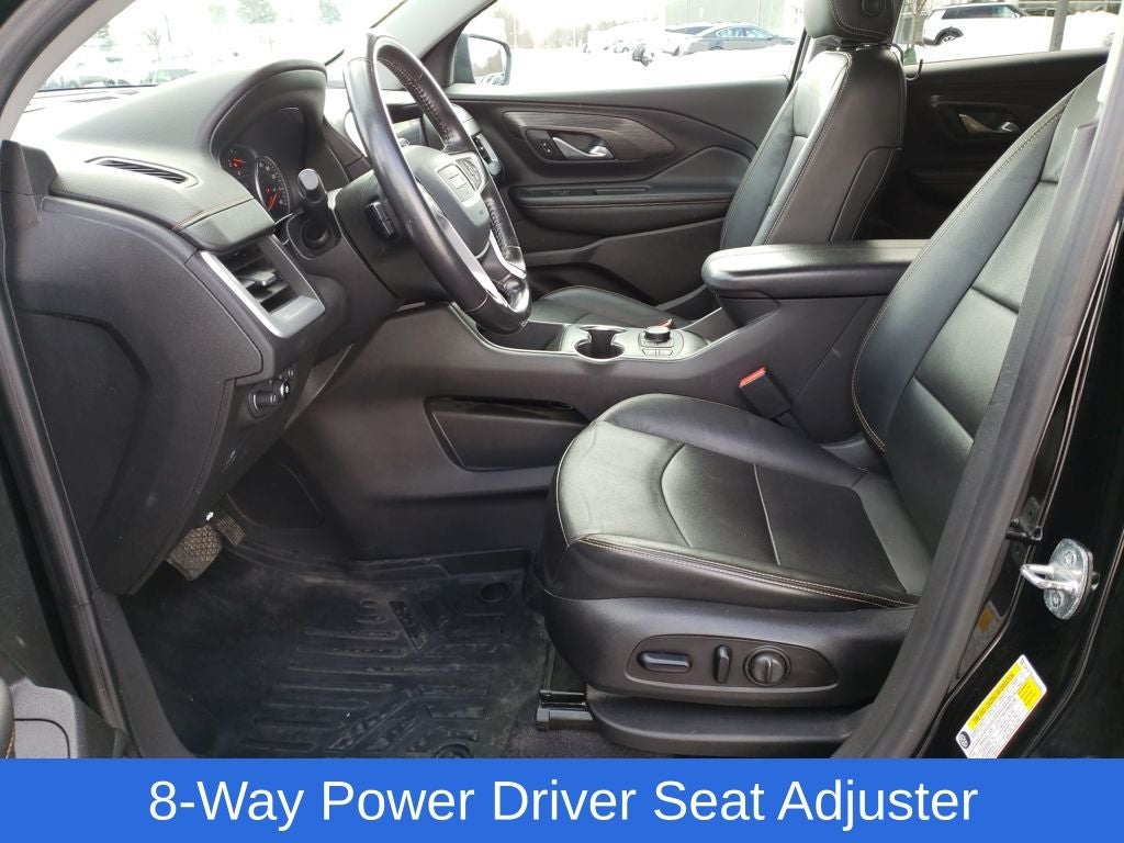 Ebony Twilight Metallic 2020 GMC Terrain SLT FWD 9-Speed Automatic 1.5L DOHC Terrain SLT, 4D Sport Utility, 1.5L DOHC, 9-Speed Automatic, FWD, Ebony Twilight Metallic, Jet Black Leather, 2 USB Data Ports, 2 USB Data Ports w/SD Card Reader, 3.47 Axle Ratio, 4-Way Manual Front Passenger Seat, 4-Wheel Disc Brakes, 6-Speaker Audio System Feature, 8-Way Power Driver Seat Adjuster, ABS brakes, Air Conditioning, Alloy wheels, AM/FM radio: SiriusXM, Apple CarPlay/Android Auto, Auto High-beam Headlights, Auto-dimming door mirrors, Auto-dimming Rear-View mirror, Automatic temperature control, Bluetooth® For Phone, Brake assist, Bumpers: body-color, Compass, Delay-off headlights, Driver & Front Passenger Heated Seats, Driver door bin, Driver vanity mirror, Dual front impact airbags, Dual front side impact airbags, Electronic Stability Control, Emergency communication system: OnStar and GMC connected services capable, Exterior Parking Camera Rear, Four wheel independent suspension, Front anti-roll bar, Front Bucket Seats, Front Center Armrest, Front dual zone A/C, Front fog lights, Front reading lights, Fully automatic headlights, Heated door mirrors, Heated front seats, High-Intensity Discharge Headlights, Illuminated entry, License Plate Front Mounting Package, Low tire pressure warning, Occupant sensing airbag, Outside temperature display, Overhead airbag, Overhead console, Panic alarm, Passenger door bin, Passenger vanity mirror, Perforated Leather-Appointed Seat Trim, Power door mirrors, Power Driver Lumbar Control, Power driver seat, Power steering, Power windows, Preferred Equipment Group 4SA, Radio data system, Radio: GMC Infotainment Audio System w/8 Display, Rear anti-roll bar, Rear seat center armrest, Rear window defroster, Rear window wiper, Remote keyless entry, Roof rack: rails only, Security system, SiriusXM Radio, Speed control, Speed-sensing steering, Split folding rear seat, Spoiler, Steering wheel mounted audio controls, Tachometer, Telescoping steering wheel, Tilt steering wheel, Traction control, Trip computer, Turn signal indicator mirrors, Variably intermittent wipers, Wheels: 18 x 7 Machined Aluminum w/Gray Accents.