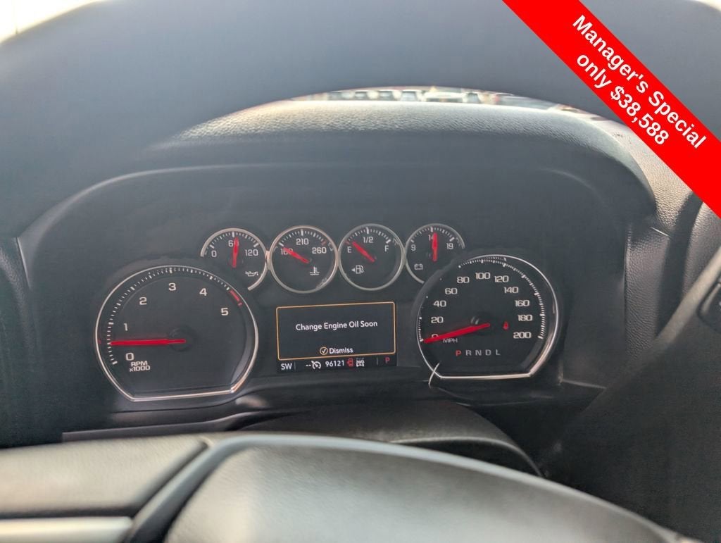 This Silverado's rugged exterior is complemented by a well-appointed interior that offers exceptional comfort and convenience. The spacious cabin features premium cloth seating, a tilt steering wheel, and an array of user-friendly controls and technology features that make every drive more enjoyable.