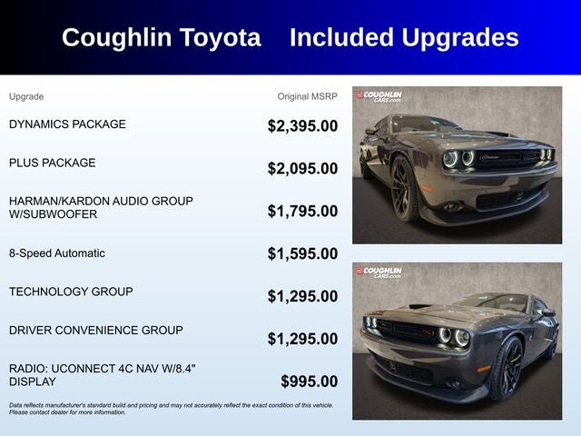 CONTACT COUGHLIN TOYOTA SALES AT 740-929-9000. Priced below KBB Fair Purchase Price! Clean CARFAX. ***This 2021 Dodge Challenger R/T Scat Pack is a great choice***, Challenger R/T Scat Pack, 2D Coupe, SRT HEMI 6.4L V8 MDS, 8-Speed Automatic, RWD, Granite Crystal Metallic Clearcoat. Please call or e-mail first for the best and quickest information. Visit www.coughlintoyota.com to see more of this store’s new and used vehicle inventory for sale. Pricing excludes tax, title, license and document fee. While we make every effort to prevent pricing errors, key stroke and human errors do occur. Please see dealer for details. Odometer is 10712 miles below market average!