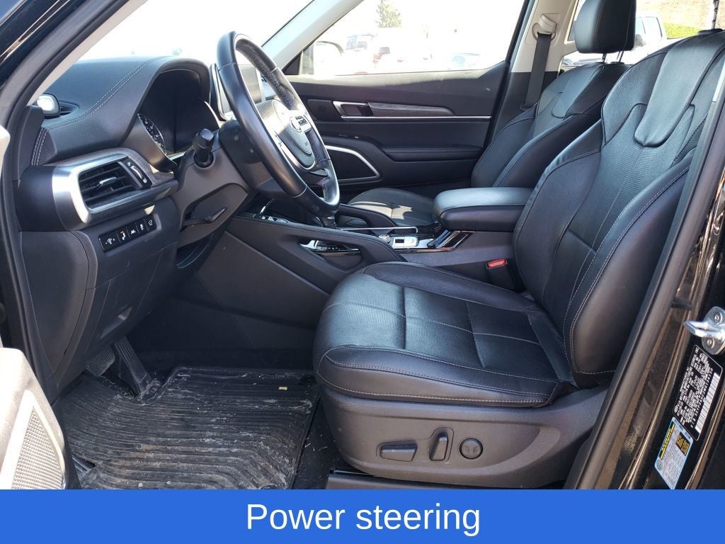 Ebony Black 2021 Kia Telluride EX FWD 8-Speed Automatic 3.8L V6 DGI DOHC Dual CVVT Telluride EX, 4D Sport Utility, 3.8L V6 DGI DOHC Dual CVVT, 8-Speed Automatic, FWD, Ebony Black, Black Leather, 2nd Row Captain Chairs, 3.648 Axle Ratio, 3rd row seats: split-bench, 4-Wheel Disc Brakes, 6 Speakers, ABS brakes, Air Conditioning, Alloy wheels, AM/FM radio: SiriusXM, Apple CarPlay & Android Auto, Auto-dimming Rear-View mirror, Automatic temperature control, Brake assist, Bumpers: body-color, Carpeted Floor Mats, Compass, Delay-off headlights, Driver door bin, Driver vanity mirror, Dual front impact airbags, Dual front side impact airbags, Electronic Stability Control, Emergency communication system: 911 Connect, EX Premium Package, Four wheel independent suspension, Front anti-roll bar, Front Bucket Seats, Front Center Armrest, Front dual zone A/C, Front reading lights, Fully automatic headlights, Heated & Ventilated Front Bucket Seats, Heated door mirrors, Illuminated entry, Knee airbag, Leather Seat Trim, Leather Shift Knob, Leather steering wheel, LED Headlamps, Low tire pressure warning, Mud Guard Kit, Navigation System, Occupant sensing airbag, Outside temperature display, Overhead airbag, Overhead console, Panic alarm, Passenger door bin, Passenger vanity mirror, Power door mirrors, Power driver seat, Power Liftgate, Power moonroof, Power passenger seat, Power steering, Power windows, Radio data system, Radio: AM/FM/SIRIUS Display Audio, Rear air conditioning, Rear anti-roll bar, Rear audio controls, Rear reading lights, Rear seat center armrest, Rear window defroster, Rear window wiper, Reclining 3rd row seat, Remote keyless entry, Roof rack: rails only, Satin Chrome Roof Rails, Security system, Self Leveling Rear Suspension, Smart Key w/ Push Button and Remote Start, Speed control, Speed-sensing steering, Split folding rear seat, Spoiler, Steering wheel mounted audio controls, Tachometer, Telescoping steering wheel, Tilt steering wheel, Tow Hitch w/Harness (TOF), Towing Package, Traction control, Trip computer, Turn signal indicator mirrors, Variably intermittent wipers, Wheels: 7.5 x 20 Machined Finish Alloy.