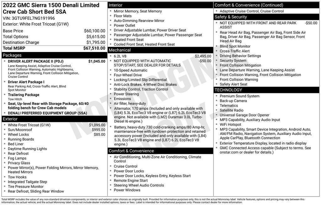 - Denali Preferred Equipment Group includes standard equipment