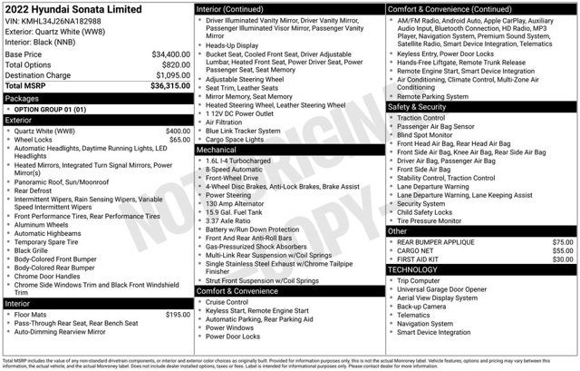 Quartz White 2022 Hyundai Sonata Limited Odometer is 7104 miles below market average! 27/37 City/Highway MPG