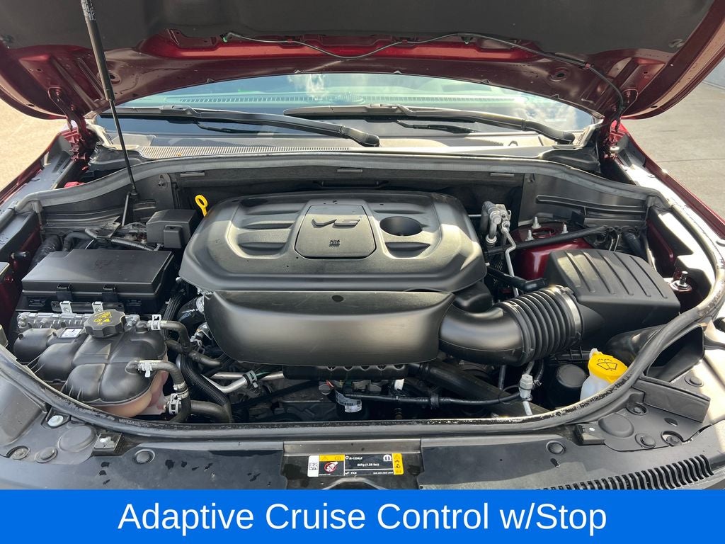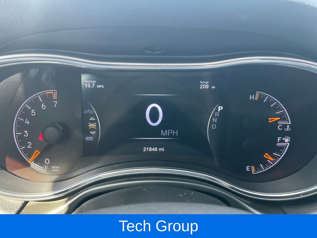 Step inside the cabin and you'll be greeted by a wealth of premium amenities, including a large 8.4-inch Uconnect touchscreen display, a premium Alpine speaker system, and a power liftgate for easy access to the spacious cargo area. The heated front seats and leather-wrapped steering wheel add an extra touch of luxury, while the available power moonroof allows you to enjoy the great outdoors.