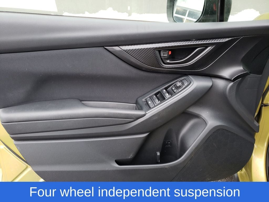 Plasma Yellow Pearl 2023 Subaru Crosstrek AWD Lineartronic CVT 2.0L 4-Cylinder DOHC 16V 4D Sport Utility, 2.0L 4-Cylinder DOHC 16V, Lineartronic CVT, AWD, Plasma Yellow Pearl, Black Cloth, 3.90 Axle Ratio, 4 Speakers, 4-Wheel Disc Brakes, ABS brakes, Air Conditioning, All-Weather Floor Liners, Alloy wheels, AM/FM radio, Anti-whiplash front head restraints, Automatic temperature control, Brake assist, Bumpers: body-color, Cloth Upholstery, Driver door bin, Driver vanity mirror, Dual front impact airbags, Dual front side impact airbags, Electronic Stability Control, Exterior Parking Camera Rear, EyeSight System, Four wheel independent suspension, Front anti-roll bar, Front Bucket Seats, Front Center Armrest, Front reading lights, High Grade Combination Meter w/Color LCD Display, Illuminated entry, Knee airbag, Low tire pressure warning, Occupant sensing airbag, Outside temperature display, Overhead airbag, Overhead console, Overhead Console Shower Light, Panic alarm, Passenger door bin, Passenger vanity mirror, Power door mirrors, Power steering, Power windows, Radio data system, Radio: Subaru STARLINK 6.5 Multimedia System, Rear anti-roll bar, Rear Seat Reminder, Rear window defroster, Rear window wiper, Remote keyless entry, Security system, Speed control, Speed-sensing steering, Split folding rear seat, Spoiler, Standard Model (CVT), STARLINK/Apple CarPlay/Android Auto, Steering wheel mounted audio controls, Tachometer, Telescoping steering wheel, Tilt steering wheel, Tire Pressure Monitoring System, Traction control, Trip computer, Variably intermittent wipers, Wheels: 17 x 7.0J Alum Alloy Blk w/Machine Finish.