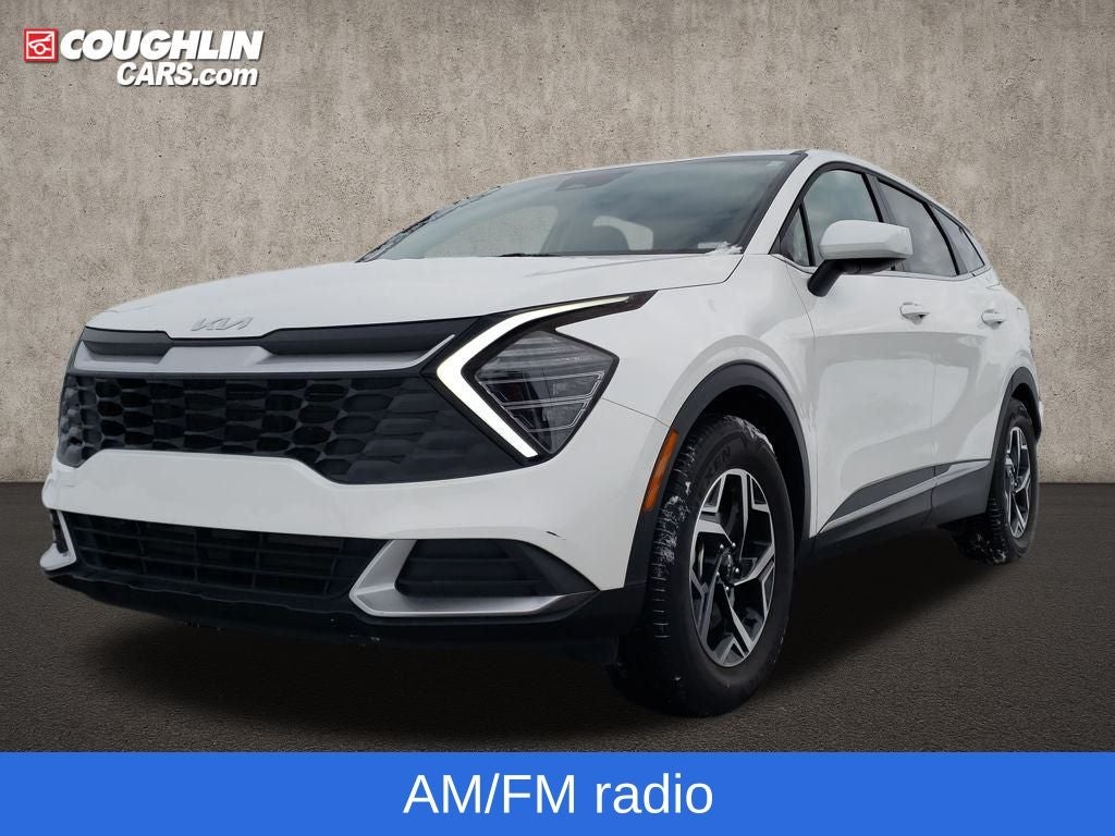 Snow White Pearl 2024 Kia Sportage LX FWD 8-Speed Automatic I4 Sportage LX, 4D Sport Utility, I4, 8-Speed Automatic, FWD, Snow White Pearl, Black Cloth, 17 Alloy Wheels, 4-Wheel Disc Brakes, 6 Speakers, ABS brakes, Air Conditioning, Alloy wheels, AM/FM radio, Auto High-beam Headlights, Axle Ratio: 3.648, Brake assist, Bumpers: body-color, Cargo Cover, Cargo Net Hybrid w/o Audio, Cargo Tray, Carpeted Floor Mats, Cloth Seat Trim, Delay-off headlights, Driver door bin, Driver vanity mirror, Dual front impact airbags, Dual front side impact airbags, Electronic Stability Control, Four wheel independent suspension, Front anti-roll bar, Front Bucket Seats, Front Center Armrest, Fully automatic headlights, Illuminated entry, Low tire pressure warning, Occupant sensing airbag, Outside temperature display, Overhead airbag, Overhead console, Panic alarm, Passenger door bin, Passenger vanity mirror, Power door mirrors, Power steering, Power windows, Radio: AM/FM/HD Audio System, Rear anti-roll bar, Rear seat center armrest, Rear side impact airbag, Rear window defroster, Rear window wiper, Remote keyless entry, Security system, Speed control, Speed-sensing steering, Split folding rear seat, Spoiler, Steering wheel mounted audio controls, Tachometer, Telescoping steering wheel, Tilt steering wheel, Traction control, Trip computer, Variably intermittent wipers.
