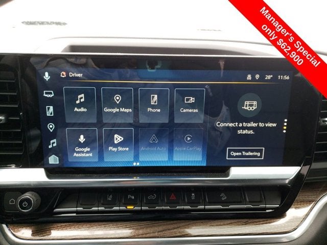 - Audio system, Chevrolet Infotainment 3 Premium system with Google built-in compatibility (select service plan required, terms and limitations apply) including navigation capability, 13.4" diagonal HD color touchscreen, includes multi-touch display, AM/FM stereo, Bluetooth® streaming audio for music and most phones; featuring Wireless Apple CarPlay and Wireless Android Auto capability for compatible phones, advanced voice recognition, in-vehicle apps, personalized profiles for infotainment and vehicle settings